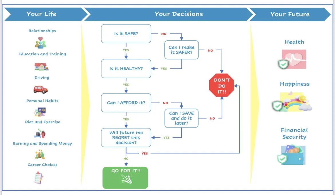 I tried to guide my children to make good choices when out with friends, but they started getting annoyed with my “nagging”. Wanting to have a strong, healthy relationship with them, I created a rough sketched outline of the “important questions to ask yourself before making a decision” to put on our fridge. Now, when faced with a decision, I am confident I gave them the tools they need to think things through to make a healthy choice.